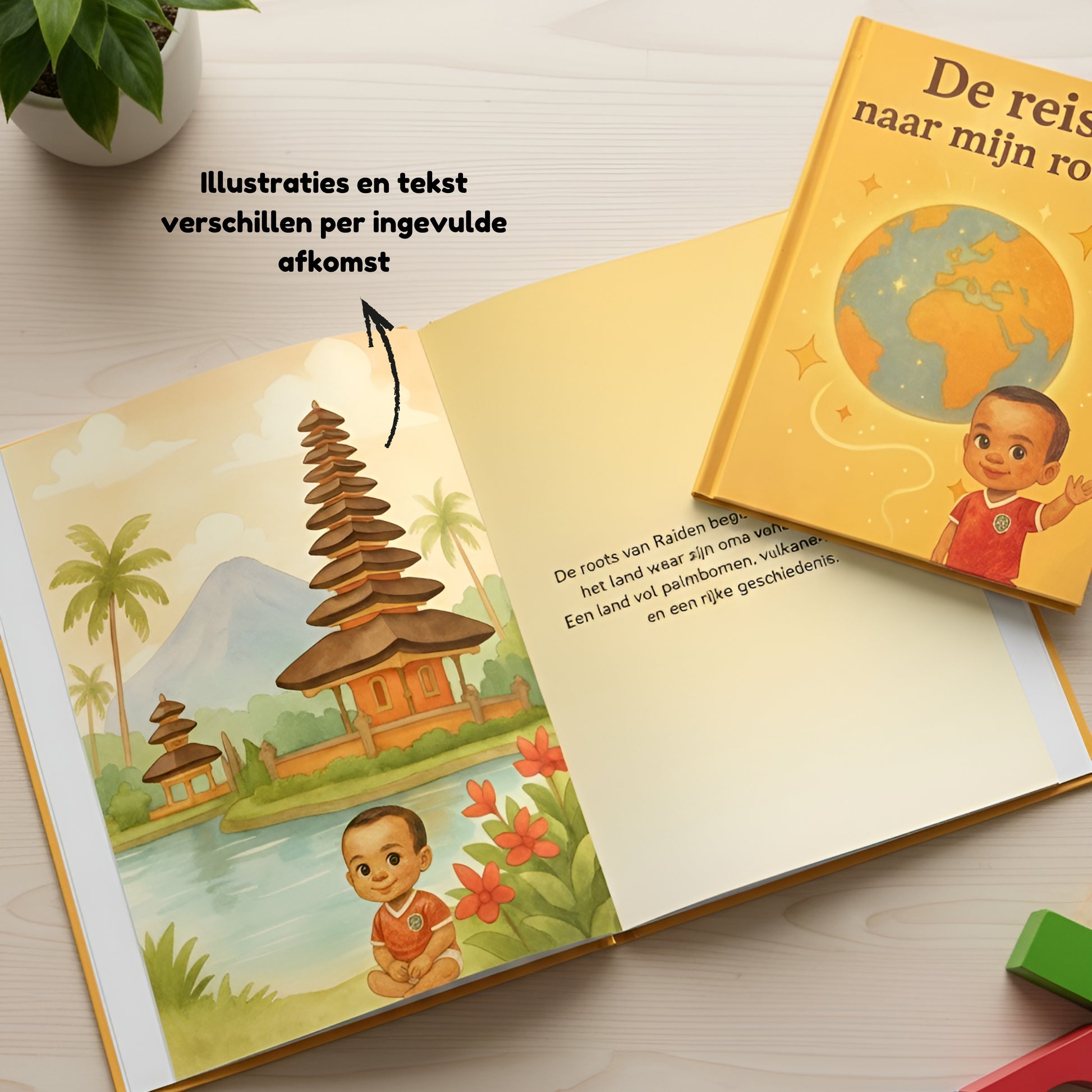 Een persoonlijk kinderboek waarin jouw kind zijn/haar roots ontdekt: volledig op maat gemaakt met hun foto, naam en afkomsten. Elke afkomst krijgt een eigen unieke pagina.